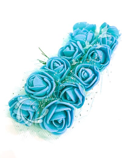 FLOR MINI ROSA DE EVA BUQUE COR AZUL CLARO